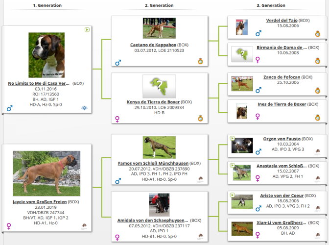 Ahnentafel vom L-Wurf Wenn Sie die Maus über die Ahnen bewegen erscheint ein größeres Bild des Ahnen zurück