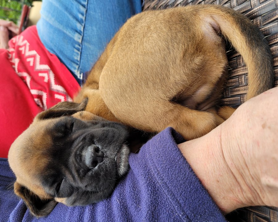 Die ersten Welpenkringel, als ob er darauf gewartet hätte.