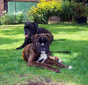 Auch sollte er nicht zu klein sein und Wachhund-Funktion ausüben können. Als letzte Auswahl blieben Rottweiler und Boxer.
